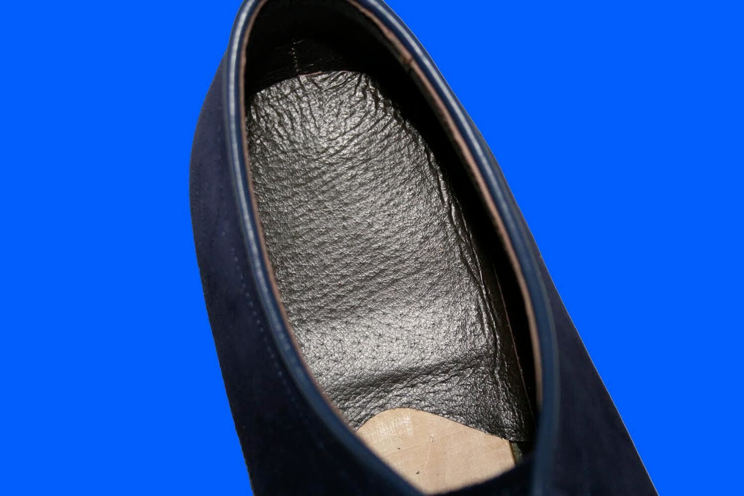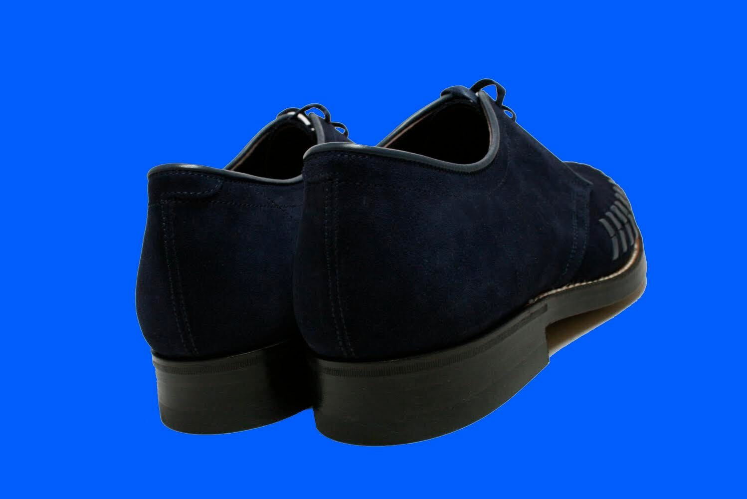 English Blue Suede Leather Upper & Blue Kip Bovine Grain Leather Weave and Piping